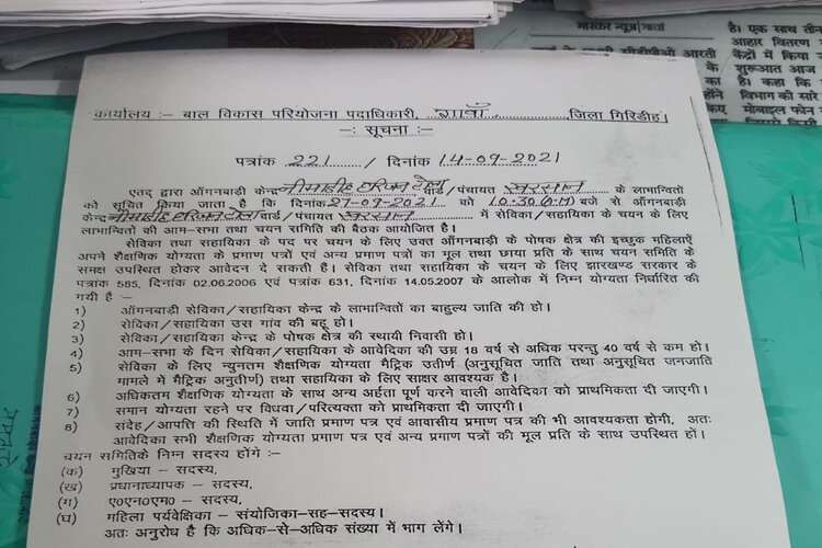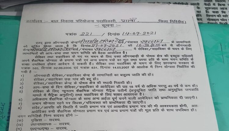 बताया गया कि योग्य अभ्यर्थियों का चयन आम सभा के माध्यम से किया जायेगा। सभी अभ्यर्थियों को अपने शैक्षिक प्रमाण पत्र, आवासीय समेत अन्य मूल प्रमाणपत्रों के साथ समय पर उपस्थित होने का निर्देश दिया गया है। उक्त आशय की जानकारी गावां के प्रभारी सीडीपीओ आरती कुमारी ने दी है।