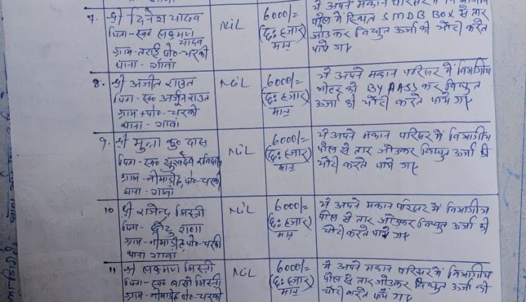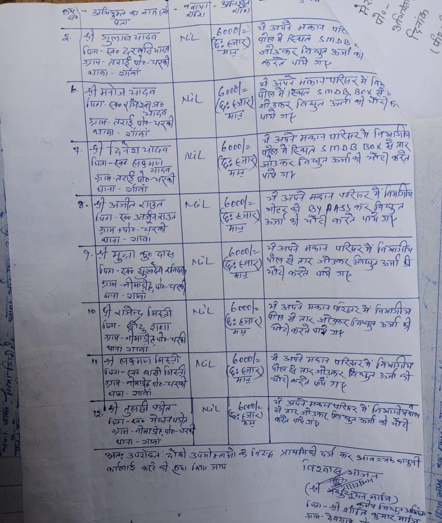 गावां : गावां बिजली विभाग की टीम ने प्रखंड के तराई व नीमाडीह में छापामारी करके 12 लोगों पर प्राथमिकी दर्ज करवाई है।सभी लोगों पर 6000 रूपये क्षतिपूर्ति राशि जमा करवाने को ले थाना में आवेदन दिया गया है। गावां प्रखंड स्थित तराई निवासी अतुल यादव, राजू यादव, उपेन्द्र यादव, गुड़िया देवी, गुलाब यादव, मनोज यादव, दिनेश यादव, चरकी निवासी अजीत राउत, निमाडीह निवासी मुन्ना कुमार, राजेन्द्र मिस्त्री, लक्ष्मण मिस्त्री एवम तुलसी पंडित के खिलाफ गावां थाना में आवेदन देकर बिजली चोरी की प्राथमिकी दर्ज करवाई गयी है।