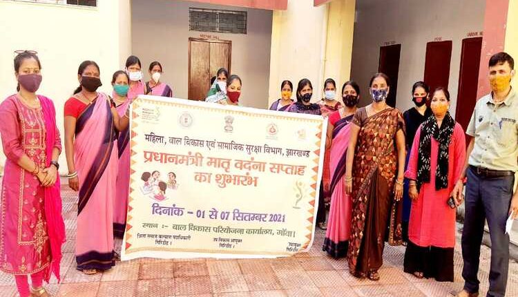 गावां : प्रखंड कार्यालय में बुधवार को पोषण माह एवं मातृ वंदना सप्ताह अभियान का शुभारंभ किया गया। यह अभियान का शुभारंभ सीडीपीओ आरती कुमारी ने हाथों में बैनर रखकर की। सीडीपीओ आरती कुमारी ने कहा कि एक सितंबर से सात सितंबर तक मातृ वंदना सप्ताह के रूप में मनाया जा रहा है। इस बीच मातृ वंदना से सम्बंधित सभी समस्याओं का एक सप्ताह के अंदर निराकरण किया जायेगा।