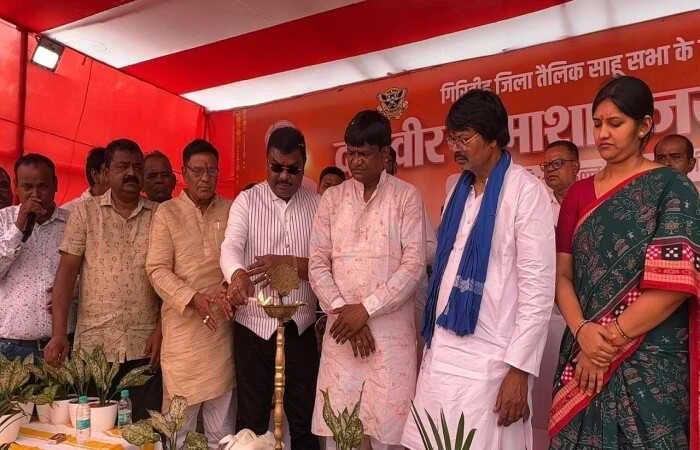 जमुआ : प्रखंड के मिर्जागंज स्थित साहू धर्मशाला में दानवीर भामाशाह जयंती श्रद्धा, सम्मान और उत्साह के साथ मनाई गई। इस अवसर पर समाज के कई वरिष्ठ नेता, जनप्रतिनिधि, बुद्धिजीवी और बड़ी संख्या में युवाओं की सक्रिय भागीदारी देखने को मिली। कार्यक्रम में धनबाद के सांसद ढुल्लू महतो मुख्य अतिथि के रूप में शामिल हुए, जबकि झारखंड के पूर्व मंत्री योगेंद्र प्रसाद साहू, कोडरमा की पूर्व जिला परिषद अध्यक्ष शालिनी गुप्ता तथा टफकॉन टीएमटी के निदेशक मोहन प्रसाद साव विशिष्ट अतिथि के रूप में उपस्थित रहे। कार्यक्रम की अध्यक्षता बालगोविंद साव ने की तथा संचालन धर्म प्रकाश साव द्वारा किया गया, जिनकी संयोजित प्रस्तुति ने कार्यक्रम को सुव्यवस्थित रूप से आगे बढ़ाया।